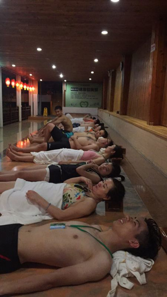 有的小伙伴是按摩,有的去汗蒸,最觸目驚心的是去石板炕。